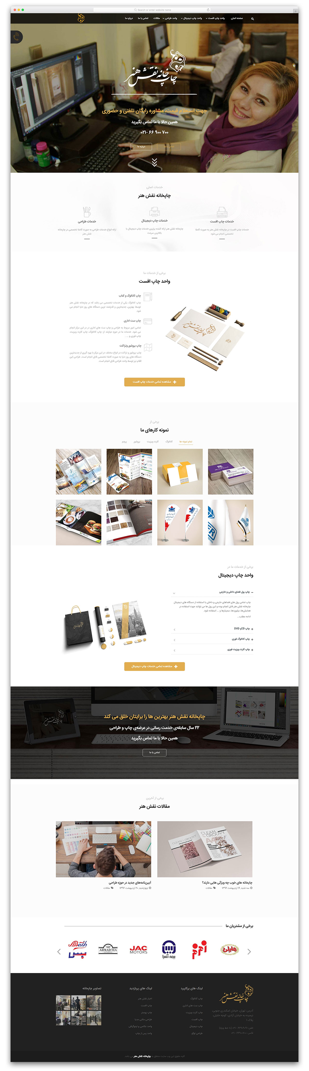 چاپخانه نقش هنر از سال 1375 شروع به کار نموده و تا کنون افتخار همکاري با شرکت ها و موسسات گوناگوني را داشته است. سعي ما در اين مکان بر اين بوده تا بتوانيم تمام نيازهاي چاپي شما مشتريان گرامي اعم از چاپ افست با دستگاه هاي چهار رنگ همزمان، چاپ ديجيتال با دستگاه زيراکس، چاپ بنر 4 - 6 - 8 رنگ و پلات و لمينيت را با بهترين کيفيت چاپ به انجام برسانيم، در خصوص قيمت تمام شده سفارشات چاپي نيز با تشکيل شيت هاي عمومي و تقسيم هزينه هاي چاپ بين چندين نفر قيمت را به حداقل رسانده ايم تا رضايت کامل شما مشتريان عزيز جلب شود.